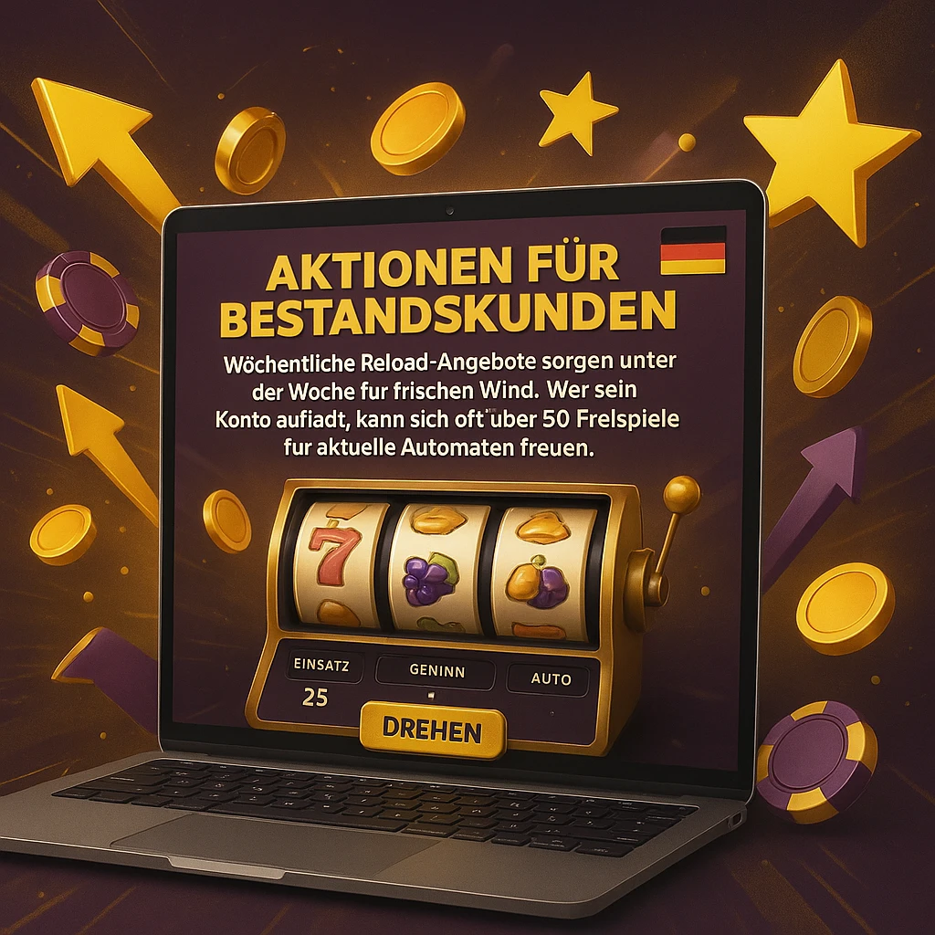 Wöchentliche Reload-Angebote sorgen unter der Woche für frischen Wind. Wer sein Konto auflädt, kann sich oft über 50 Freispiele für aktuelle Automaten freuen.